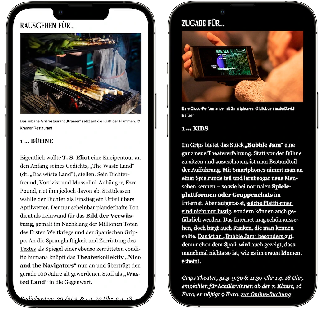 Berlin bietet vieles - aber nicht alles. In jeder Newsletter-Ausgabe bekommen Leser:innen Tipps für Ausflüge ins Grüne, im „Blick in die Republik“ gibt es Event-Highlights aus ganz Deutschland.
